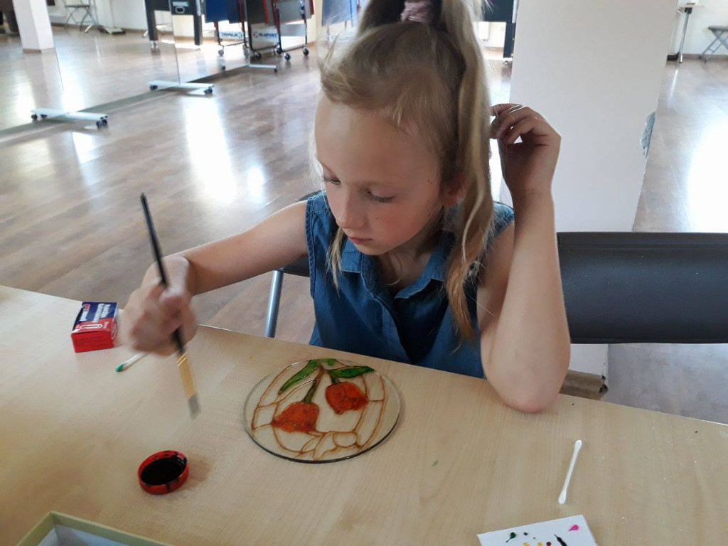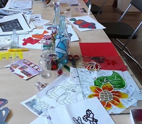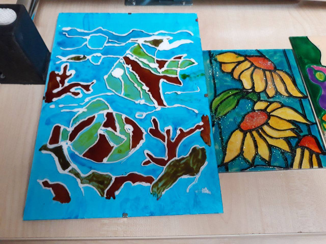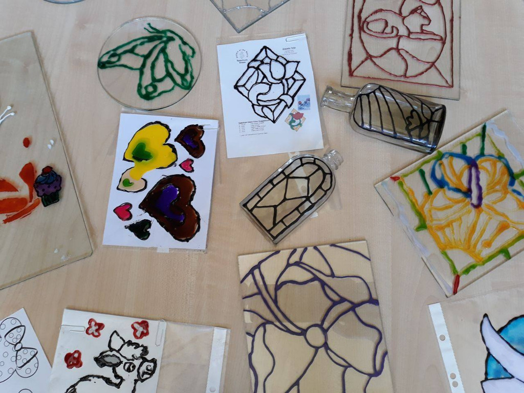 Uczestnicy mogli się zapoznać z kilkoma technikami wykonywania witrażu. Każdy mógł próbować własnych sił podczas zajęć. Dzieci z wielkim zaangażowaniem wykonały różnorodne prace , które będzie można obejrzeć podczas wspólnej wystawy po zakończeniu wszystkich zajęć z projektu.