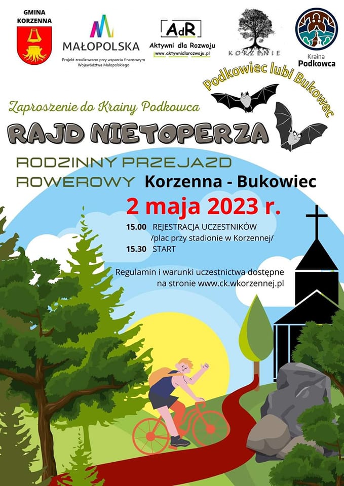 Tegoroczna Majówka wyjątkowo odbyła się 2 maja i jak przystało na Święto Flagi mieniła się na biało czerwono. Wydarzenie połączyło ze sobą uroczyste świętowanie 232 .rocznicy uchwalenia Konstytucji 3 Maja z otwarciem sezonu turystycznego w tym mało znanym zakątki Małopolski. W części patriotycznej Majówki znalazła się Msza Św. w intencji Ojczyzny, otwarcie nowo powstałego boiska wielofunkcyjnego oraz program okolicznościowy młodzieży ze Szkoły Podstawowej w Wojnarowej. Biało czerwone flagi wśród uczestników rozdawali wicemarszałek Sejmu RP Ryszard Terlecki oraz wicewojewoda małopolski Mateusz Małodziński. Wśród zacnych gości znaleźli się jeszcze Pani Barbara Bartuś – poseł na sejm RP, Pan Wiktor Durlak – senator RP, Pani Marta Mordarska – radna Sejmiku Województwa Małopolskiego, Stanisław Pasoń – radny Sejmiku Województwa Małopolskiego, przedstawiciele Rady Powiatu Nowosądeckiego oraz Rady Gminy Korzenna. Na zakończenie tej części Majówki przy WTZ w Bukowcu posadzono lipę Św. Kingi. Druga część imprezy została poświęcona promocji regionu, a w szczególności popularyzacji wiedzy o Podkowcu Małym – chronionym gatunku nietoperza, który szczególnie upodobał sobie Bukowiec na swoje miejsce do życia. Wśród atrakcji znalazły się prelekcja połączona z spacerem w rezerwacie Diable Skały poprowadzona przez Wojciecha Gubałę – chiropterologa oraz warsztaty biblioterapeutyczne zrealizowane pod okiem Pani Elżbiety Bukowiec. Nie zabrakło też wielu atrakcji dla dzieci takich jak leśna kolorowanka, strzelanie z łuku, balonowe zoo i wiele innych. Były także stoiska kuchni leśnej i regionalnej przygotowanej przez KGW Łyczana, KGW Bukowiec i KGW Lipnica Wielka. Gwoździem programu okazał się rowerowy Rajd Nietoperza, na zakończenie którego uczestnicy losowali atrakcyjne nagrody. Pogoda dopisała więc czego chcieć więcej?